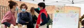 Pour faciliter le retrait des paniers, tous les membres de l’association sont présents. Rythmée par des rires et des partages de recettes en tout genre, c’est dans le respect des consignes sanitaires que se déroule l'après-midi. Par la mise en place de créneaux horaires de retrait, les étudiants membres de l’association Circuit court après les cours ont veillé à limiter le nombre de personnes présentes en même temps dans le potager. Du gel hydroalcoolique est mis à disposition en libre-service ainsi qu’un sens de circulation, délimité par des cagettes de fruits et de légumes déjà vidées par les premiers passages.